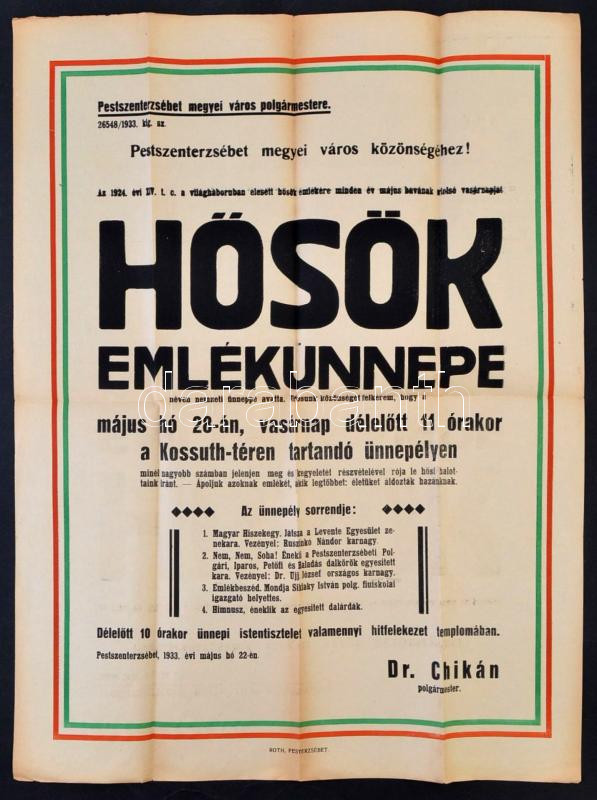 1933 Pesterzsébet I. világháborús emlékünnep plakátja 50x70 cm https://www.darabanth.com/de/289-Fernauktion/289.0/Andere-Sammelgebiete/Militaria~26/1933-Pesterzsebet-I-vilaghaborus-emlekunnep-plakatja-50x70-cm~II1521217