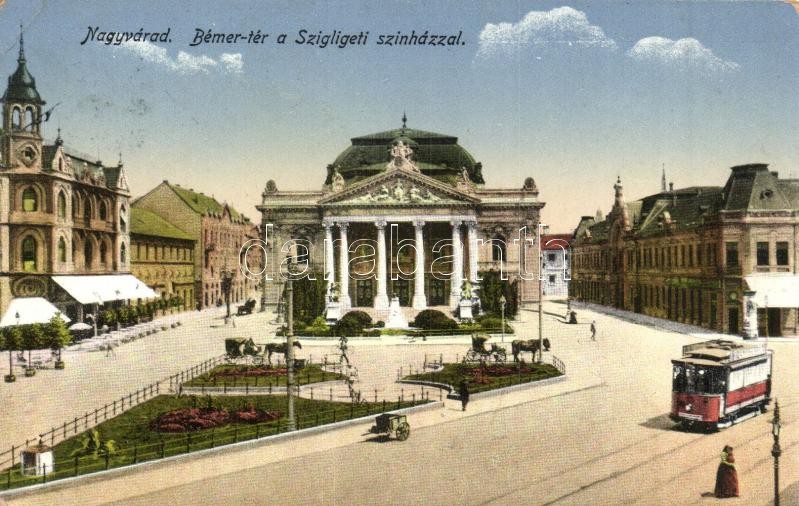 Nagyvárad, Oradea; Bémer tér, Szigligeti színház, villamos, Sonnenfeld... https://www.darabanth.com/de/289-Fernauktion/289.0/Ansichtskarten/Siebenburgen~400006/Nagyvarad-Oradea-Bemer-ter-Szigligeti-szinhaz-villamos-Sonnenfeld-Adolf-kiadasa-square-~II1526266