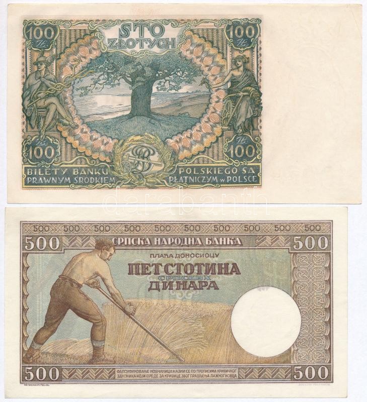 Vegyes: Lengyelország 1934. 100Zl + Szerbia / Német megszállás 1942. 5... https://www.darabanth.com/de/289-Fernauktion/289.0/Numismatik/Weltweit-Banknoten~300015/Vegyes-Lengyelorszag-1934-100Zl-plus-Szerbia-Nemet-megszallas-1942-500D-TI-I-Mixed-Poland-1~II1520654