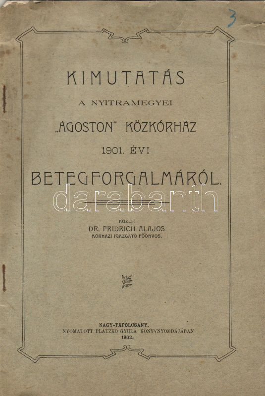 1902 Kimutatás a nyitramegyei Ágoston közkórház 1901 évi betegforgalmá... https://www.darabanth.com/de/29-Fernauktion/29.0/Andere-Sammelgebiete/~256/1902-Kimutatas-a-nyitramegyei-Agoston-kozkorhaz-1901-evi-betegforgalmarol-Platzko-Gyula-ko~II53243