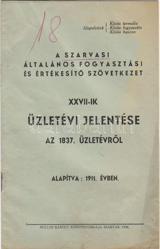A Szarvasi Általános Fogyasztási és Értékesítő szövetkezet jelentése 1... https://www.darabanth.com/de/29-Fernauktion/29.0/Andere-Sammelgebiete/~256/A-Szarvasi-Altalanos-Fogyasztasi-es-Ertekesito-szovetkezet-jelentese-1837-uzletevrol-~II32187