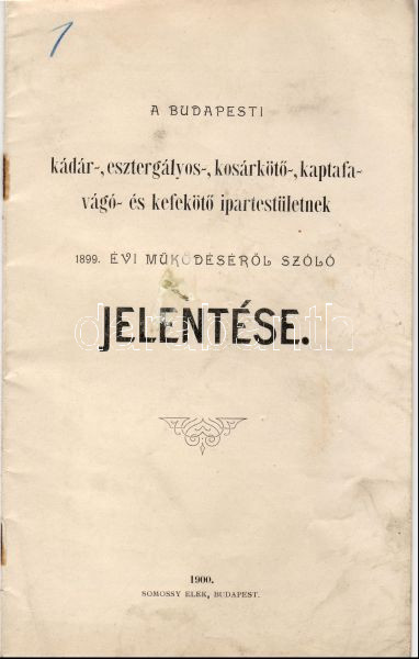 Beschreibung: A budapesti kádár, esztergályos, kosárkötő, kaptafavágó és kefekötő ipartestület 1899 évi jelentése; 1900 Somossy Elek