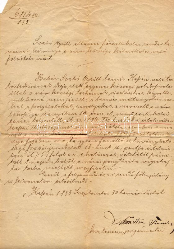 1893 Kassai illetőség megadásáról szóló irat 15 kr illetékbélyeggel https://www.darabanth.com/de/29-Fernauktion/29.0/Andere-Sammelgebiete/~259/1893-Kassai-illetoseg-megadasarol-szolo-irat-15-kr-illetekbelyeggel~II53536