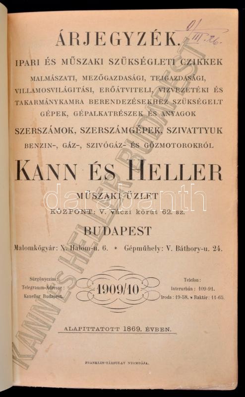 1909-1910 Bp., Kahn és Heller műszaki üzlet árjegyzéke. Bp.,Franklin-n... https://www.darabanth.com/de/29-Gross-Auktion/29.1/Andere-Sammelgebiete/Drucksachen~11787/1909-1910-Bp-Kahn-es-Heller-muszaki-uzlet-arjegyzeke-Bp-Franklin-ny-704-p-Szamos-illusz~II1742493