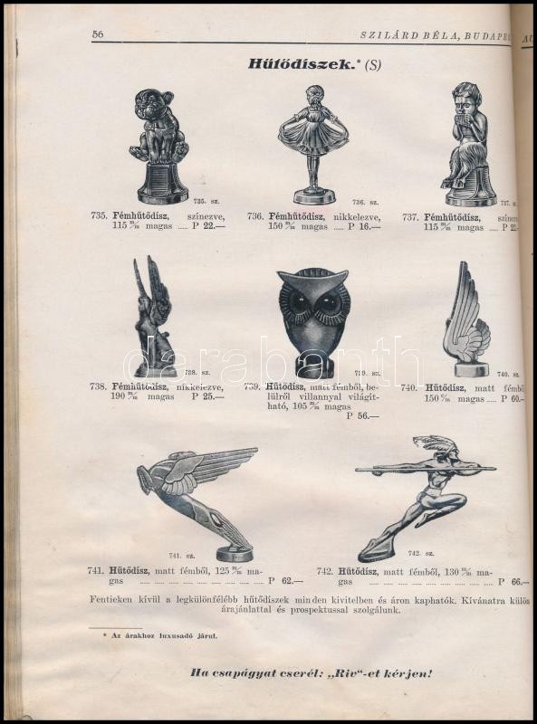1929-30 Szilárd Béla autófelszerelések képes árjegyzéke. 102p. Keményk... https://www.darabanth.com/de/29-Gross-Auktion/29.1/Andere-Sammelgebiete/Drucksachen~11787/1929-30-Szilard-Bela-autofelszerelesek-kepes-arjegyzeke-102p-Kemenykotesben-egy-oldalo~II1765087