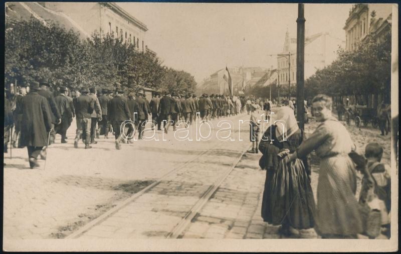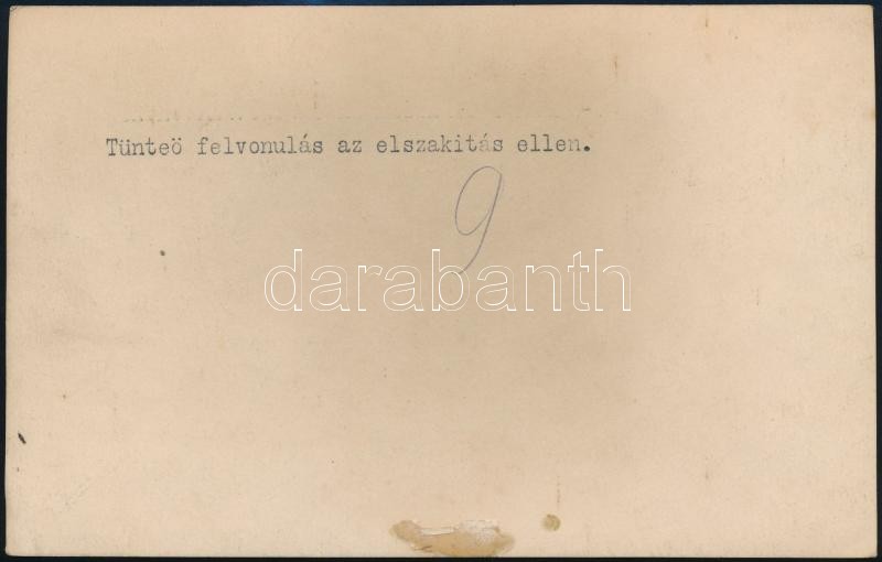 1921 A soproni népszavazás előtti helyzet képei. Tüntető felvonulás az elszakítás ellen. Kazinczi Rudolf feliratozott felvétele / Images of Oedenburg before the referendum. 17x11 cm