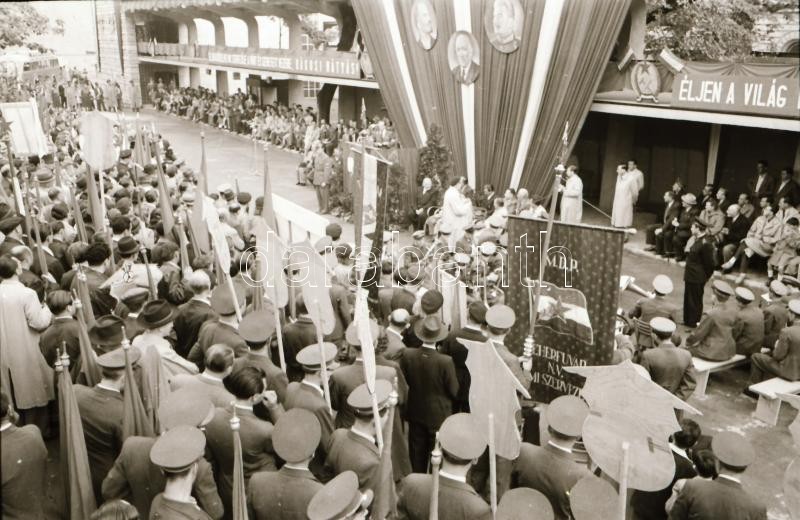 Beschreibung: 1949 Budapest, Sztálin téri (késÅ‘bb Engels téri) autóbusz pályaudvar épÃtésérÅ‘l (5 db) és átadó ünnepségérÅ‘l készült (35 db) szabadon felhasználható vintage negatÃv, Rózsa György (?-?) budapesti fotóriporter hagyatékából, 24x36 mm