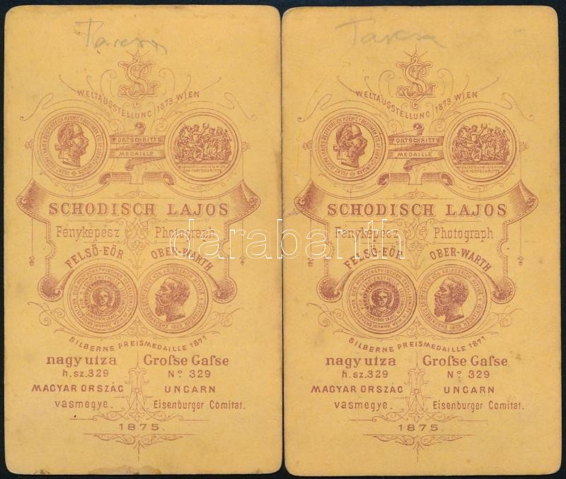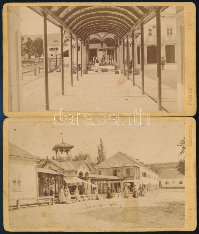 cca 1880 Tarcsafürdő, 2 db keményhátú fotó Schodisch Lajos felsőőri műterméből, hátulján feliratozva, 6×10,5 cm / cca 1880 Bad Tatzmannsdorf, 2 photographs from the atelier of Lajos Schoditsch in Oberwart, with notes on its back, 6×10,5 cm