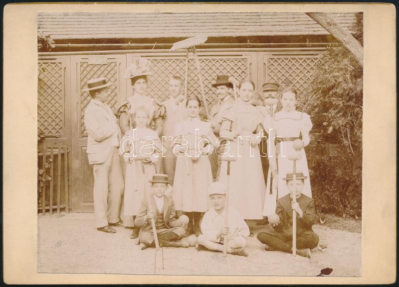 cca 1900 Krokettező társaság, keményhátú fotó, 13x18 cm https://www.darabanth.com/de/29-Gross-Auktion/29.1/Andere-Sammelgebiete/Foto~12126/cca-1900-Krokettezo-tarsasag-kemenyhatu-foto-13x18-cm~II1774388