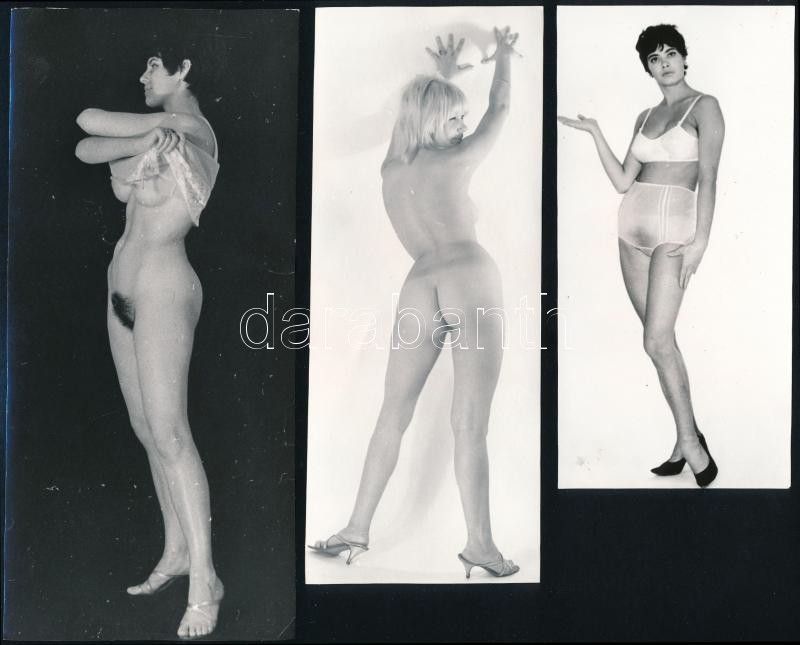 cca 1971 Divatos frizurák, szolidan erotikus felvételek, 4 db vintage fotó + 4 db vintage negatív, (a pozitív és a negatív képek nem összetartozók), 23,5x12 cm és 6x6 cm között