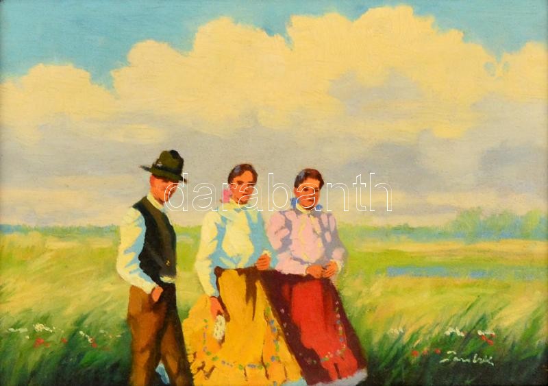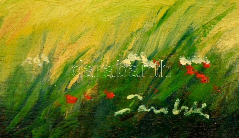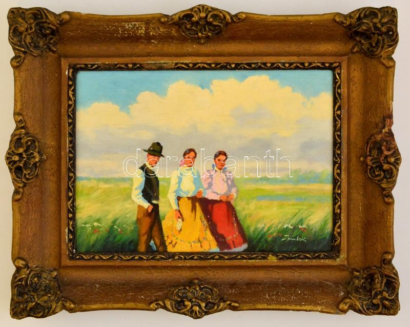 Beschreibung: Parobek Alajos (1896-1947): Vasárnap délután. Olaj, karton, jelzett, keretben, 26×35 cm