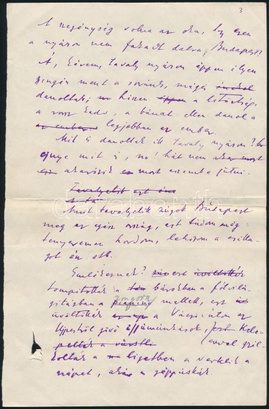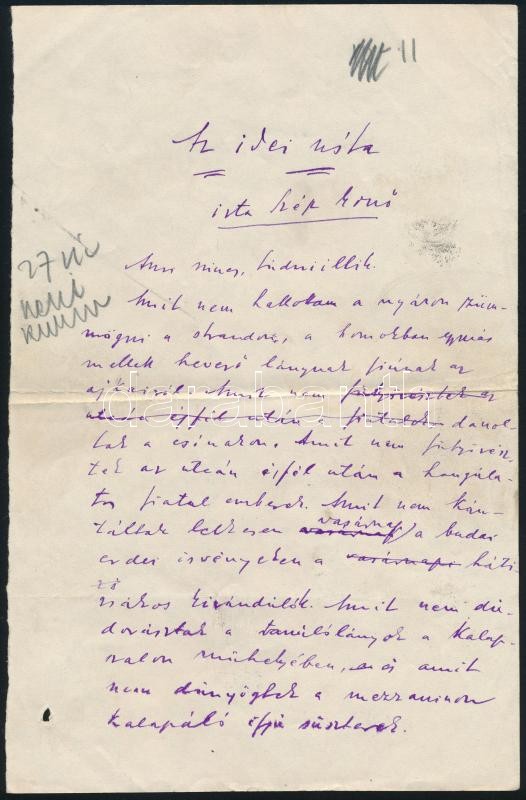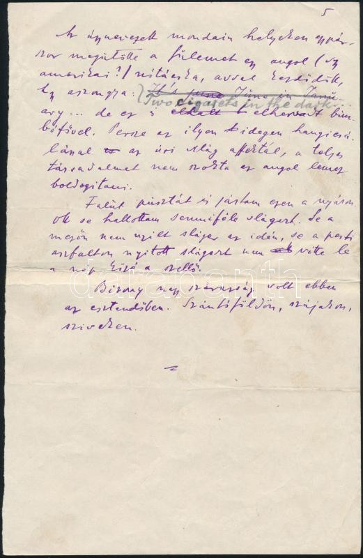 Beschreibung: Szép Ernő (1884-1953): Az idei nóta c. írásának kézirata. Öt beírt oldal javításokkal.
