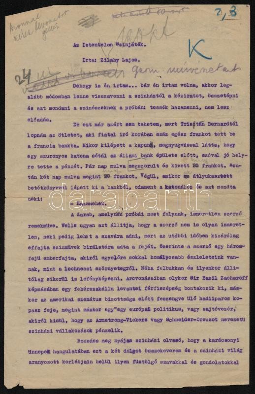 Zilahy Lajos (1891-1974): Az Istentelen Színjáték. c. kézirata. Félig ... https://www.darabanth.com/de/29-Gross-Auktion/29.1/Andere-Sammelgebiete/Historische-Dokumenten-Handschriften~12115/Zilahy-Lajos-1891-1974-Az-Istentelen-Szinjatek-c-kezirata-Felig-geppel-felig-kezzel-C3~II1760030