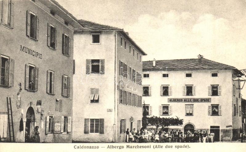 Beschreibung: Caldonazzo, Kalnetsch (Südtirol); Albergo Marchesoni (Alle due spade), Municipio / hotel, town hall, crowd