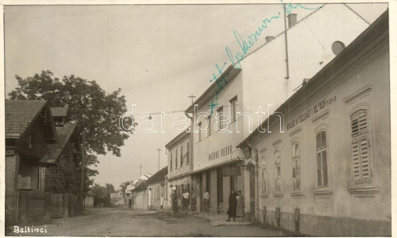 1941 Belatinc, Beltinci; utcakép, Osterc Peter üzlete, Takarékpénztár és Hitelbank / Hranilnica in Posojilnica r.z.m.z. / savings bank, shop, street view. photo