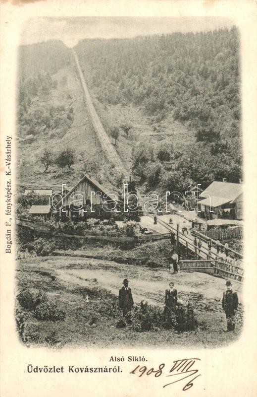 1908 Kovászna, Covasna; Alsó sikló. Bogdán F. fényképész / lower funic... https://www.darabanth.com/de/29-Gross-Auktion/29.1/Ansichtskarten/Siebenburgen~11798/1908-Kovaszna-Covasna-Also-siklo-Bogdan-F-fenykepesz-lower-funicular~II1759955