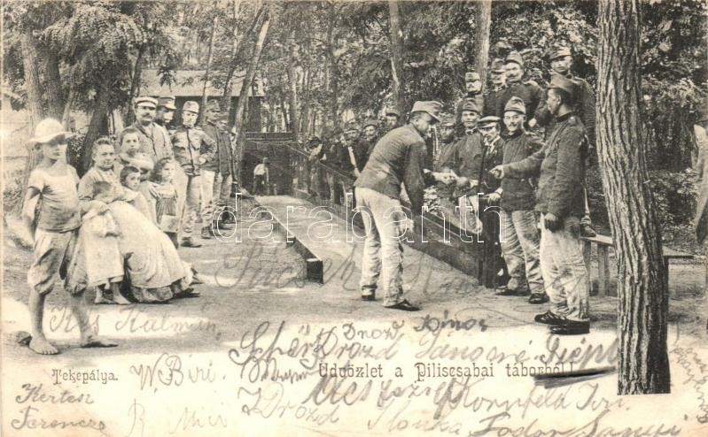 1904 Piliscsaba-tábor, Tekepálya tekéző katonákkal / K.u.K. soldiers p... https://www.darabanth.com/de/29-Gross-Auktion/29.1/Ansichtskarten/Ungarn~11796/1904-Piliscsaba-tabor-Tekepalya-tekezo-katonakkal-KuK-soldiers-playing-bowling-in-the-mil~II1768721