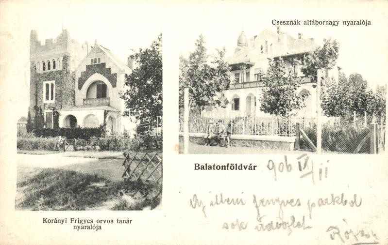 1906 Balatonföldvár, Csesznák altábornagy és Korányi Frigyes orvos tan... https://www.darabanth.com/de/29-Gross-Auktion/29.1/Ansichtskarten/Ungarn~11796/1906-Balatonfoldvar-Csesznak-altabornagy-es-Koranyi-Frigyes-orvos-tanar-nyaraloja-Gerendai~II1768210