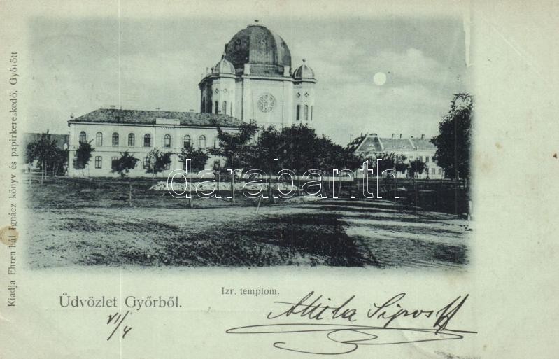 Beschreibung: Győr, izraelita templom, zsinagóga, este. Kiadja Ehrenthál Ignácz