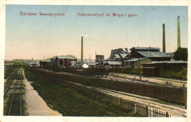 Tatabánya, Szénosztályozó és brigett (brikett) gyár, ipari vasút (EK) https://www.darabanth.com/de/29-Gross-Auktion/29.1/Ansichtskarten/Ungarn~11796/Tatabanya-Szenosztalyozo-es-brigett-brikett-gyar-ipari-vasut-EK~II1749400
