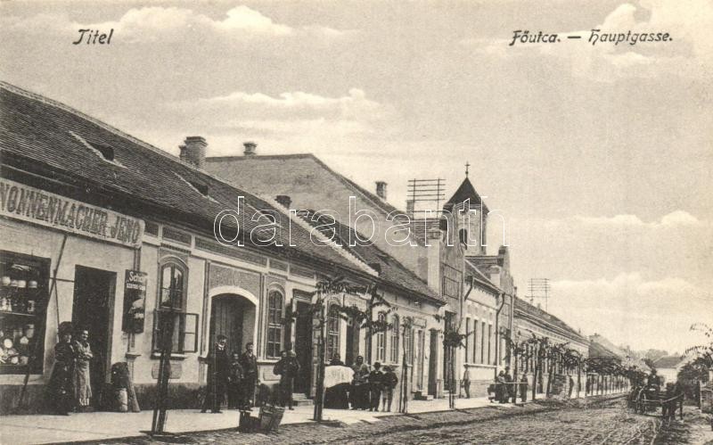 Beschreibung: Titel, Fő utca, gyógyszertár, Nonnenmacher Jenő üzlete és saját kiadása / main street with shop and pharmacy (EK)