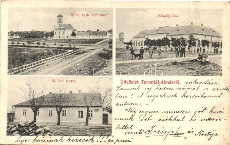 Torontálalmás, Jabuka, Apfeldorf; Községháza, Római katolikus templom,... https://www.darabanth.com/de/29-Gross-Auktion/29.1/Ansichtskarten/Vojvodina~11802/Torontalalmas-Jabuka-Apfeldorf-Kozseghaza-Romai-katolikus-templom-posta-town-hall-post~II1769209