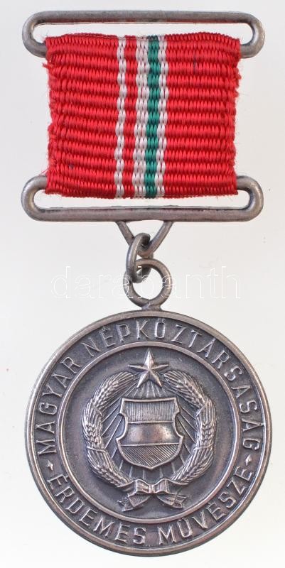 1957. "A Magyar Népköztársaság Érdemes Művésze" Ag kitüntetés, hátlapon fémjel, eredeti mellszalaggal (24mm) T:1 / Hungary 1957. "Title for the Artist of Merit of the Hungarian People"s Republic" Ag decoration, hallmark on reverse, on original ribbon (24mm) C:UNC
