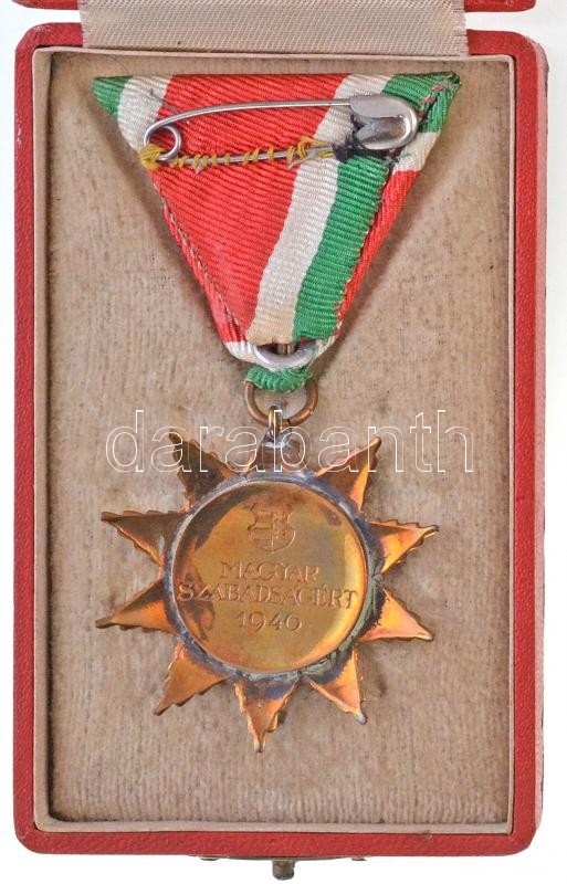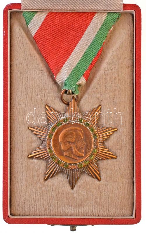 1957. "A Magyar Szabadság Érdemrend bronz fokozata" Br kitüntetés mellszalagon eredeti tokban T:1-,2 / Hungary 1957. "Order of Merit of the Hungarian Freedom, Bronze Grade" Br decoration with ribbon, in original case C:AU,XF