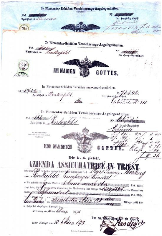 1873 Biztosítási kötvények Azienda biztosító 4 db különféle / Insuranc... https://www.darabanth.com/de/290-Fernauktion/290.0/Andere-Sammelgebiete/Dokument~100017/1873-Biztositasi-kotvenyek-Azienda-biztosito-4-db-kulonfele-Insurance-bonds~II1499019