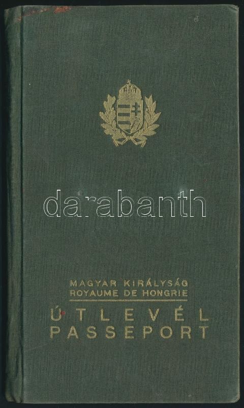 1937 Bp., A Magyar Királyság által kiállított fényképes útlevél, földb... https://www.darabanth.com/de/290-Fernauktion/290.0/Andere-Sammelgebiete/Dokument~100017/1937-Bp-A-Magyar-Kiralysag-altal-kiallitott-fenykepes-utlevel-foldbirtokos-reszere-~II1531418