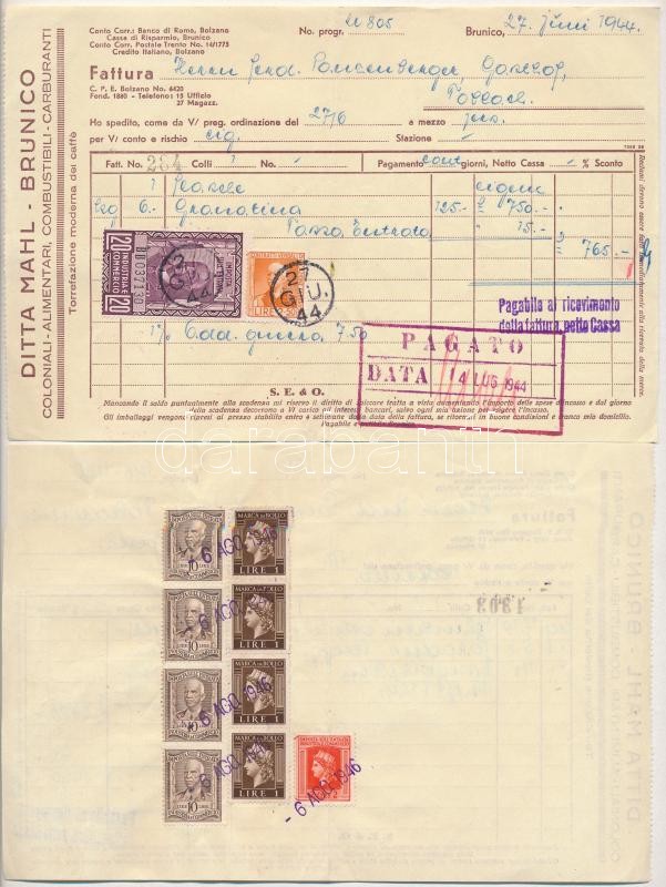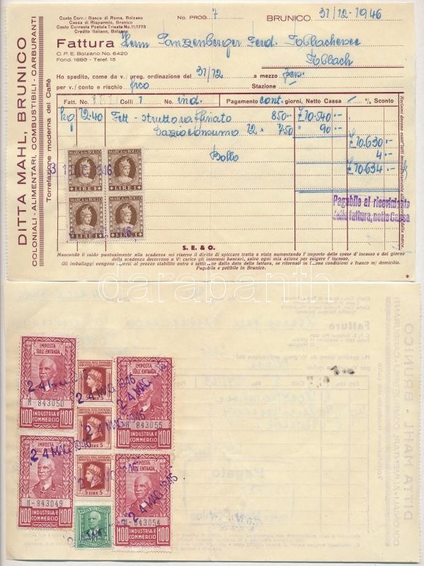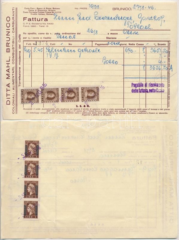 1944-1946 6 db Ditta Mahl olasz számla, okmánybélyegekkel https://www.darabanth.com/de/290-Fernauktion/290.0/Andere-Sammelgebiete/Dokument~100017/1944-1946-6-db-Ditta-Mahl-olasz-szamla-okmanybelyegekkel~II1528812