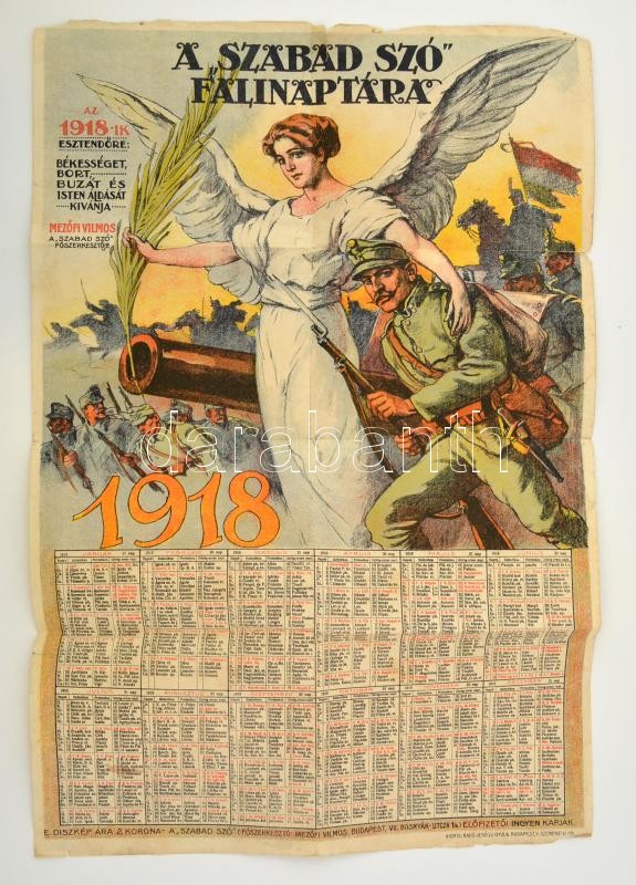 1918 A szabad szó falinaptára, litografált, szakadt, 44x29 cm https://www.darabanth.com/de/290-Fernauktion/290.0/Andere-Sammelgebiete/Drucksachen~100028/1918-A-szabad-szo-falinaptara-litografalt-szakadt-44x29-cm~II1528532