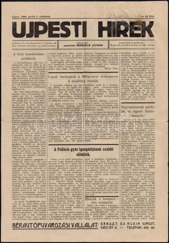 1928 Ujpesti Hirek, 1928. április 5., Szerk.: martosi Mórocz János, ki... https://www.darabanth.com/de/290-Fernauktion/290.0/Andere-Sammelgebiete/Drucksachen~100028/1928-Ujpesti-Hirek-1928-aprilis-5-Szerk-martosi-Morocz-Janos-kisse-foltos-cimoldallal~II1528450