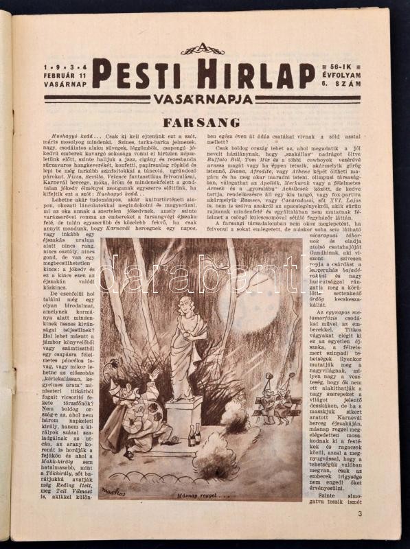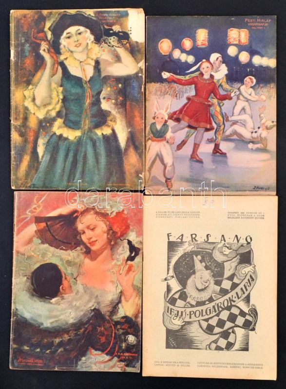 1931-1939 4 db farsangi témájú folyóirat (Pesti Hírlap Vasárnapja 1934. II. 11, 1932. II. 7., 1931. II. 15., Farsang Ifjú Polgárok Lapja 1939. februrár), változó állapotban.