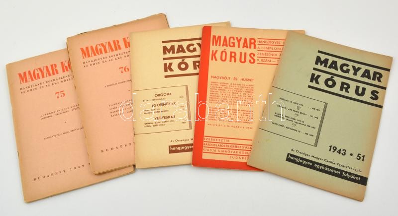 1933-1949 Magyar Kórus egyházzenei folyóirat 5 száma: 1933/9., 1942/47... https://www.darabanth.com/de/290-Fernauktion/290.0/Andere-Sammelgebiete/Drucksachen~100028/1933-1949-Magyar-Korus-egyhazzenei-folyoirat-5-szama-19339-194247-194351-1949-marcius~II1531786
