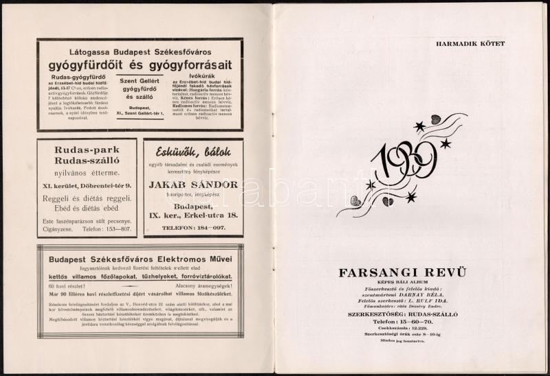 1939 Farsangi Revü. Képes báli album. Szerk.: Darnay Béla. 1939 Harmad... https://www.darabanth.com/de/290-Fernauktion/290.0/Andere-Sammelgebiete/Drucksachen~100028/1939-Farsangi-Revu-Kepes-bali-album-Szerk-Darnay-Bela-1939-Harmadik-kotet-Tuzott-papir~II1528811