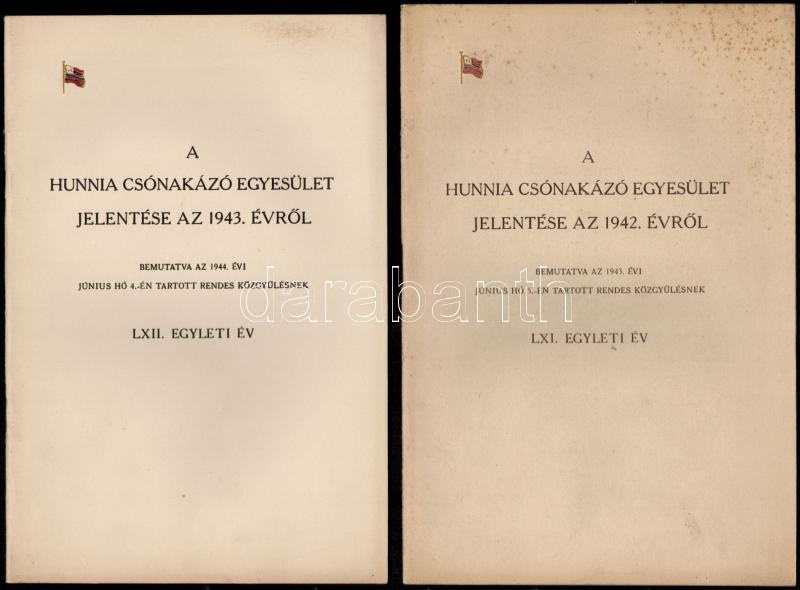 1942, 1944 A Hunnia csónakázó egylet éves jelentései. Két db https://www.darabanth.com/de/290-Fernauktion/290.0/Andere-Sammelgebiete/Drucksachen~100028/1942-1944-A-Hunnia-csonakazo-egylet-eves-jelentesei-Ket-db~II1533975