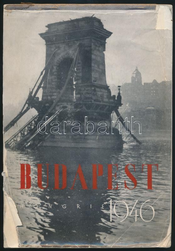 1946 Budapest-Hongrie Calendrier. Bp., Városi Idegenforgalmi Hivatal. Kissé szakadozott címoldallal, Kublin Tamás (1923-1965) fekete-fehér fotóival a romos Budapestről, francia nyelven./