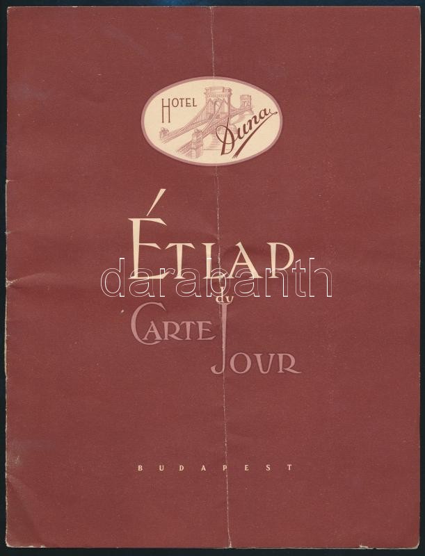 1966 A Hotel Duna többnyelvű szilveszteri étlapja https://www.darabanth.com/de/290-Fernauktion/290.0/Andere-Sammelgebiete/Drucksachen~100028/1966-A-Hotel-Duna-tobbnyelvu-szilveszteri-etlapja~II1531233