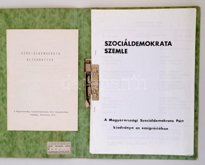 1973 Szociáldemokrata Alternativa + Szociáldemokrata szemle VII-VIII. szám, Szerk.: Kéthly Anna. Stockholm, A Magyarországi Szociáldemokrata Párt kiadványa az emigrációban, kapcsos papír mappában.