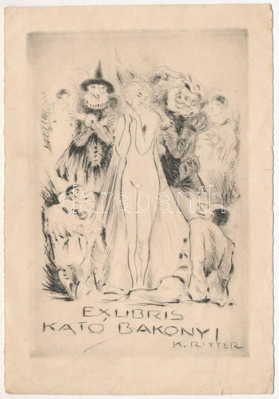 Beschreibung: Karl Ritter (1888-1977): Ex libris Kató Bakonyi. Rézkarc, papír, jelzett a karcon, 13×8 cm