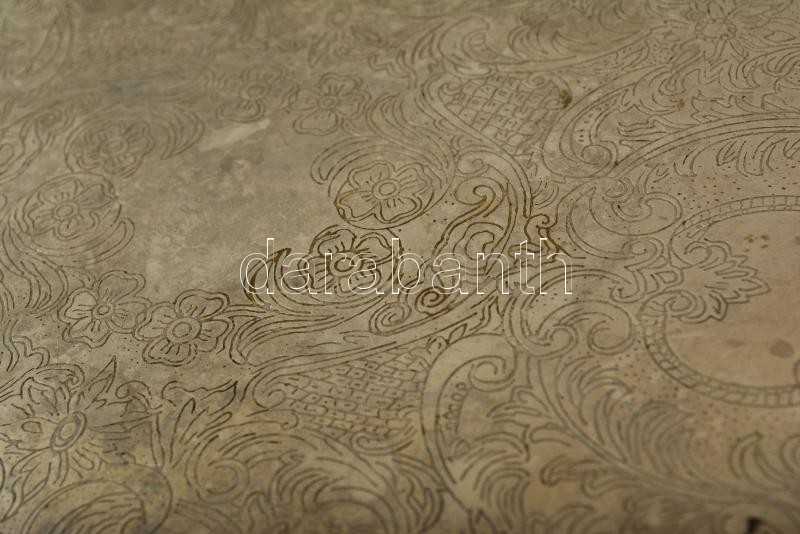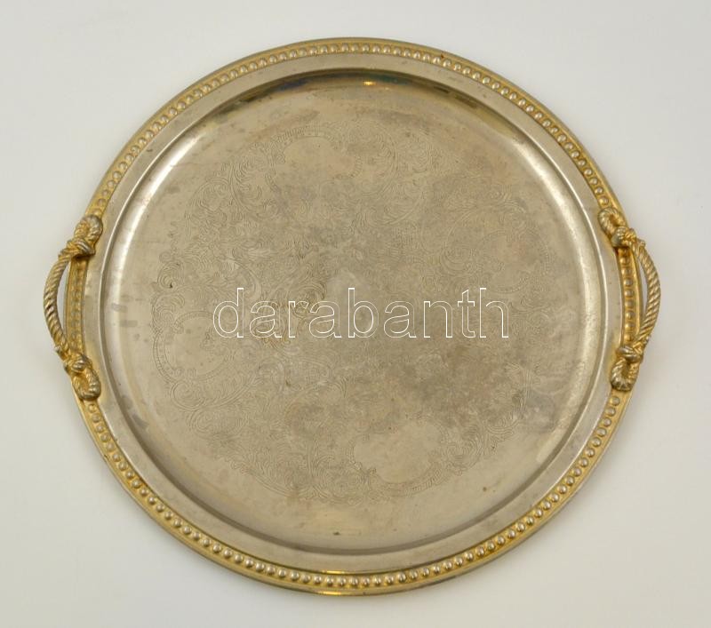 Dekoratív kö alakú füles tálca, fém, d:35 cm https://www.darabanth.com/de/290-Fernauktion/290.0/Andere-Sammelgebiete/Flohmarkt~100012/Dekorativ-ko-alaku-fules-talca-fem--d35-cm~II1532329