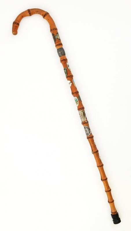 Beschreibung: Régi turistabot, 14 db fém botjelvénnyel (többek közt: Szentendre, Salzburg, Sárospatak, Wartburg) h: 86 cm