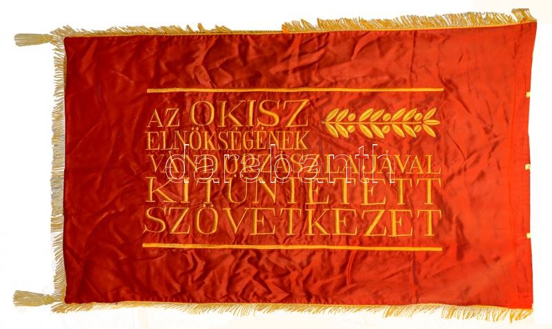 Beschreibung: Szocialista munkaversenyben elért eredményért feliratú vándorzászló. Selyem. 120x60 cm