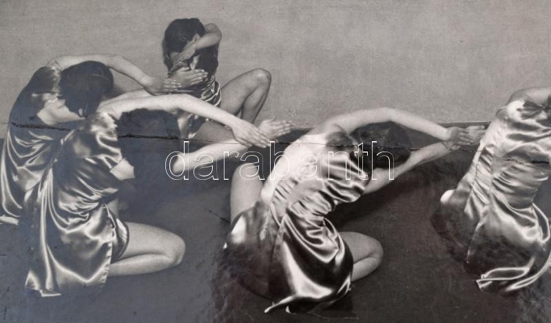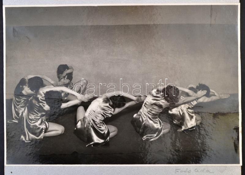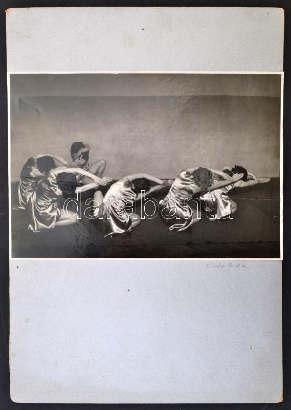 Beschreibung: 1932 Kinefónia - ülő félkör, fotó ADA, aláírt és feliratozott vintage fotóművészeti alkotás, Szentpál Olga iskolájának archívumából, felületén törésvonal, kasírozva, 16x23,5 cm, karton 34x24 cm