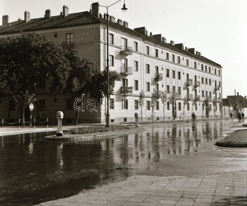 Beschreibung: cca 1965 Kecskeméti városképek, épületfotók, 13 db vintage negatív Medgyesi László (?-?) kecskeméti fotóművész hagyatékából, 6x6 cm és 6x9 cm