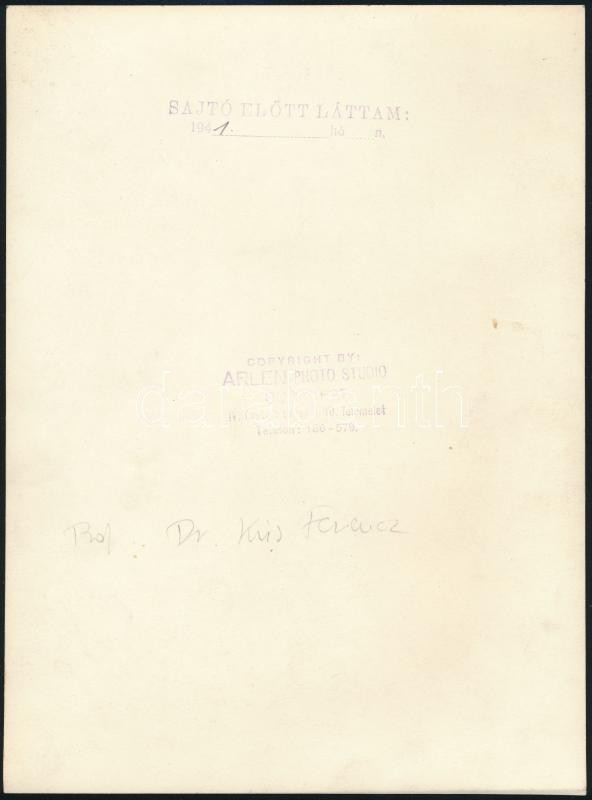 dr. Kiss Ferenc (1889-1966) anatómiaprofesszor sajtómegjelenés előtti ... https://www.darabanth.com/de/290-Fernauktion/290.0/Andere-Sammelgebiete/Foto~100020/dr-Kiss-Ferenc-1889-1966-anatomiaprofesszor-sajtomegjelenes-elotti-fotoja-Arlen-foto-hat~II1532338
