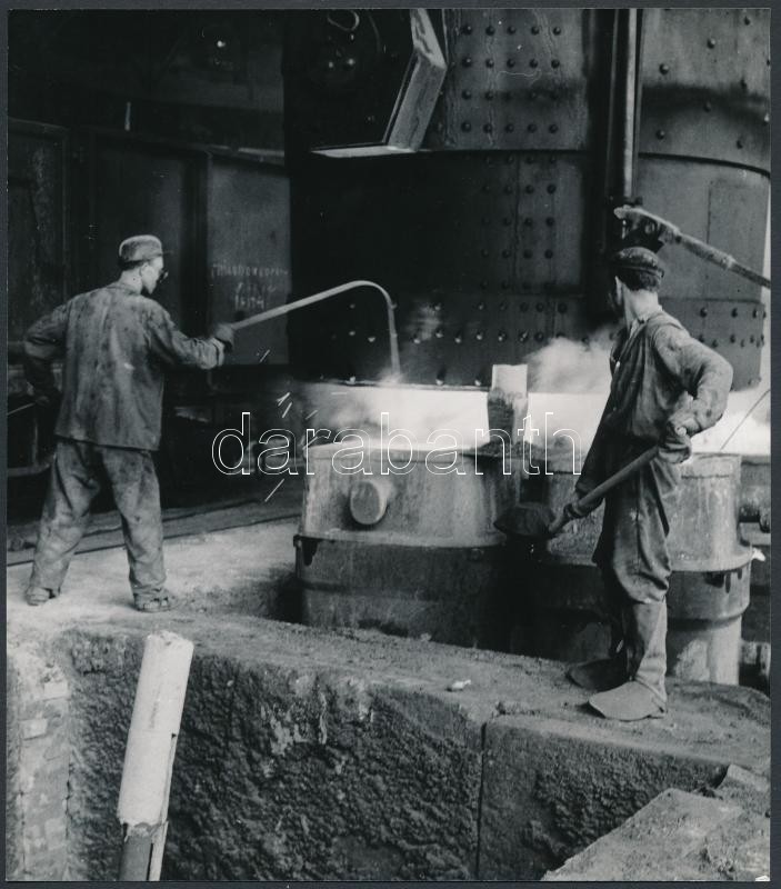 cca 1958 Diósgyőri martinászok, 4 db vintage fotó Kotnyek Antal (1921-1990) fotóriporter hagyatékából, feliratozott képek, 19x18 cm