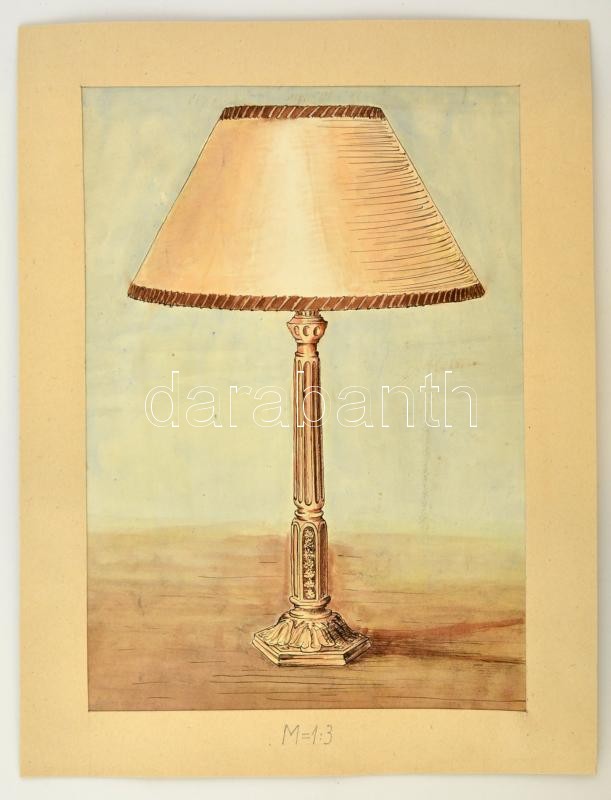 Jelzés nélkül: Lámpaterv. Vegyes technika, papír, jelzett, paszpartuba... https://www.darabanth.com/de/290-Fernauktion/290.0/Andere-Sammelgebiete/Gemalde-und-Grafiken~300103/Jelzes-nelkul-Lampaterv-Vegyes-technika-papir-jelzett-paszpartuban-27x19-cm~II1533823