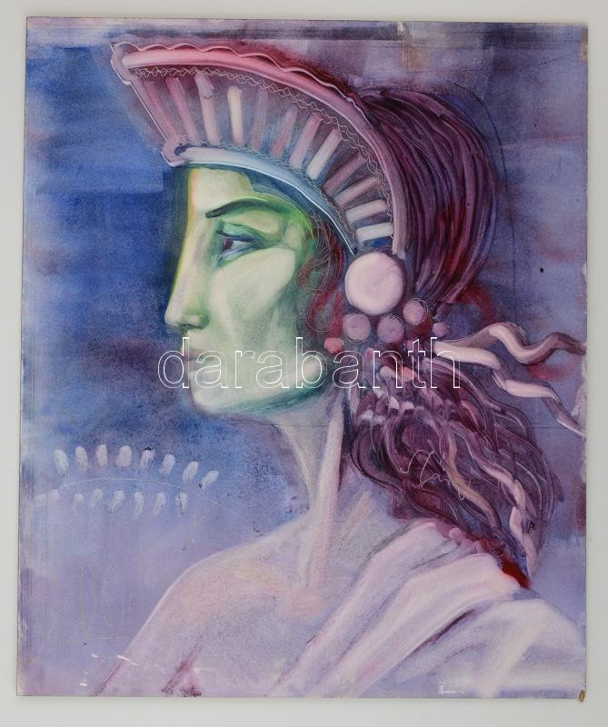 Beschreibung: Szász jelzéssel: Női fej. Vegyes technika, farost, 60×50 cm